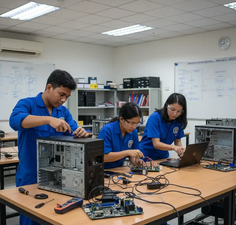 Specific careers include computer systems service technician, computer programmer, and junior database/ network administrator.