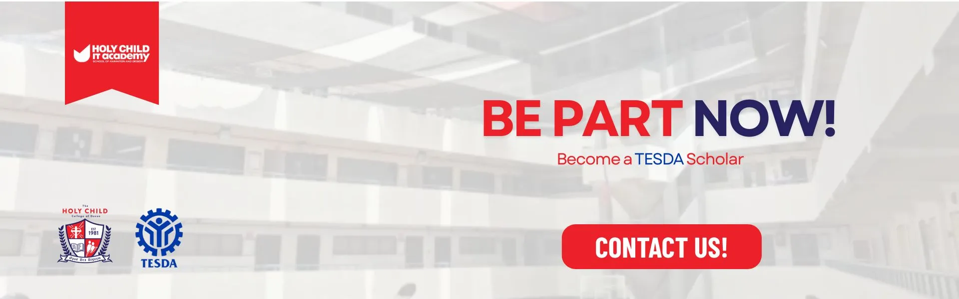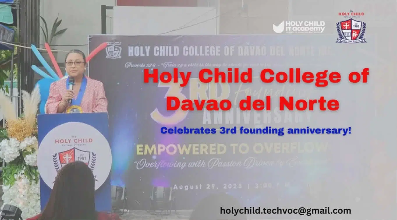 The HOLY CHILD College of Davao is a Bible-based Christian School in the Philippines founded by Mrs. Victoria D. Leuterio in 1981. Founded in God’s love that looks upon every child as a holy offering, the HOLY CHILD community, together and by association, provides quality human, professional and Christian education by teaching minds, touching hearts, and transforming lives.